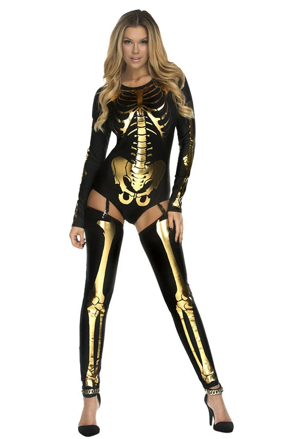 | Product Name: | Womens Long Sleeve Skeleton Halloween Costume Gold |